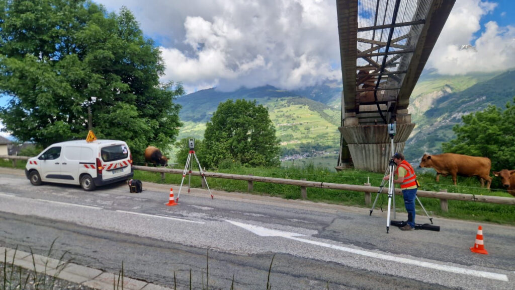 Nos équipes continuent leurs mesures d’auscultation sur le funiculaire de Bourg-Saint-Maurice -> Les Arcs. Les belles tarines Savoyardes semblent apprécier la compagnie de nos géomètres et leurs curieux instruments 🙂